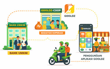 Di sisi lain, Gooldz-Coop kami dorong sebagai fondasi kelembagaan ekonomi bersama. Koperasi bukan hanya tempat simpan pinjam. Koperasi seharusnya menjadi alat konsolidasi kekuatan usaha rakyat: tempat anggota bertumbuh, belajar, mencatat transaksi, membangun disiplin keuangan, dan mengakses pembiayaan secara lebih sehat. Dalam model seperti ini, koperasi dan platform digital bisa saling menguatkan.